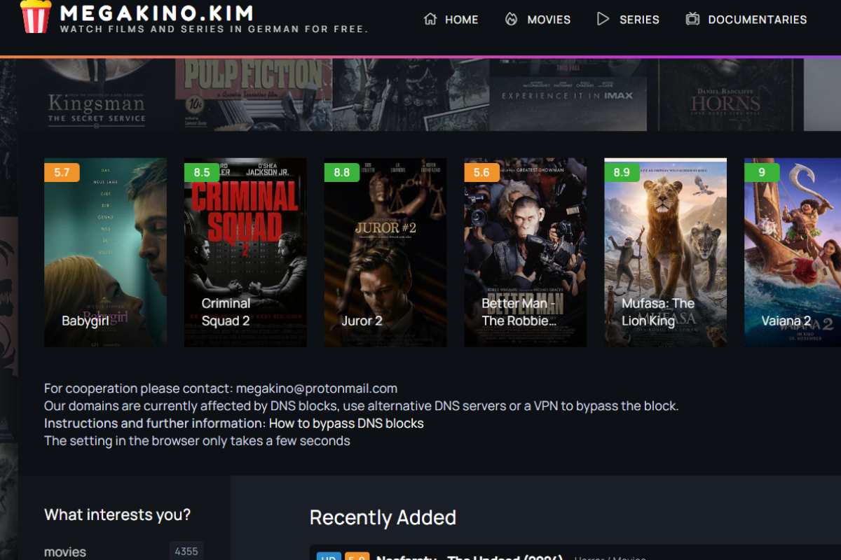 Megakino.com offers a fairly announcement-free experience compared to other free streaming platforms.